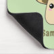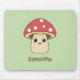 A green mouse pad with an illustration of a cute mushroom in cartoon style customisable text below! Add to a funny touch at your work or make a nice gift to a kid or a mycologist!