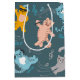 Perfect for cat lovers, this adorable pattern features cute kitties having a fun musical time. Some cats are singing, some are playing guitar, and some are dancing to the music. There are also music notes and the text musical cats. The background is a complementary teal blue and may be changed per your preference. Makes a great addition to a young boy or girl's birthday, Christmas, or other holiday party gift, especially for boys and girls who love funny cats!