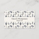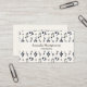 Business cards with a musical themed design. A pattern with treble clef, bass clef and other musical symbols.