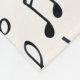 Blanket with a musical themed design. A pattern with treble clef, bass clef and other musical symbols.