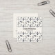 Business cards with a musical themed design. A pattern with treble clef, bass clef and other musical symbols.