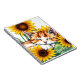 Cute cat themed personalised notebook. An adorable ai watercolor illustration of a little white and orange kitten taking a nap in a bunch of sunflowers. Add this sweet, cosy décor into your space to induce a relaxing environment.