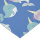This cute tablecloth features a whimsical pattern in blue of the unicorn of the sea - the narwhal!