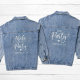 Celebrate in style with this Cute Nashville Bachelorette Party Denim Jacket! Perfect for the bride's bridal party and friends, this trendy jean jacket features “The Party” in a stylish white modern script with a customisable location underneath — ideal for girls’ weekends, destination bachelorettes, or pre-wedding festivities. Whether you’re celebrating in Nashville, Vegas, or Charleston, it’s the ultimate keepsake for the bride and her best friends. Pair it with your favourite dresses, leggings, or matching bridal party outfits for a photo-ready look that’s effortlessly chic. A coordinating "Wife Of The Party" jacket is available for the bride.