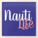 cute, nautical NAUTI LIFE script on navy blue | Glass Coaster