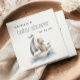 These cute baby shower napkins feature a watercolor teddy bear riding in a sailboat, below the words "baby shower" in dusty blue decorative font. Personalize the text with the name of the mom-to-be and the date in charcoal gray sans serif. Ideal for a boy's nautical-themed baby shower!