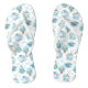 Flip flops with a whimsical pattern featuring cute smiling whales happily swimming in the sea.
