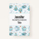 A name tag with a whimsical pattern featuring cute smiling whales happily swimming in the sea.