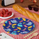 Colours of this pretty design: purple, green, pink, yellow, navy blue...