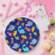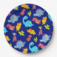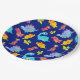 Cute Navy Blue Pattern Dinosaur Birthday Paper Plate
