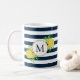 Cute Navy Stripes Yellow Watercolor Lemon Monogram Coffee Mug