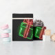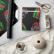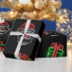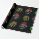 Cute and fun retro bright groovy neon light Santas and present gift Christmas wrapping paper on a black backgound.