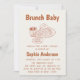 Celebrate the mama-to-be with a cozy and stylish brunch-themed baby shower invitation! This modern neutral design features warm brown typography with charming hand-drawn brunch illustrations including pancakes, coffee, and breakfast details — perfect for a relaxed and trendy “Brunch Baby” celebration.