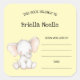 Cute neutral elephant baby shower bookplate square sticker