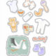 New baby stickers, featuring baby clothes, toys and more. Fun and gender neutral for a baby boy or girl.