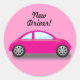 Sticker with a cute pink car and text that says, "New Driver!" The text can remain "as is" or can be changed to whatever you choose. The background colour can also be customised.
