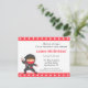 For kids who love the whole ninja shinobi way, they will love a ninja birthday party with games around the ideas of espionage, infiltration and training. This invitation is perfect for that party with a cute little ninja kid in grey and red outfit. He has a katana sword on his back and is preparing to throw a shuriken ninja star! Personalise easily with your party details. On the reverse page is a shuriken ninja star pattern in white and red.