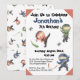 Create a memorable and fun birthday celebration for the cute ninja kid in your life. This easily customisable birthday party invitation is part of a matching set of birthday party accessories. You can host the best ninja themed birthday party for your little martial arts enthusiast. Just add your own details to customise, and don’t forget about party plates, cups, napkins, and all the essentials. This design features some cute little watercolor ninjas in green, blue, orange, grey, black and white.