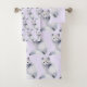 Towel set with a watercolor image of a white fox with fancy blue flora designs all over its fur.