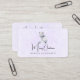 Business cards with a watercolor image of a white fox with fancy blue flora designs all over its fur.