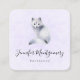 Business cards with a watercolor image of a white fox with fancy blue flora designs all over its fur.