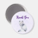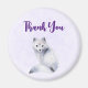 Thank you magnet with a watercolor image of a white fox with fancy blue flora designs all over its fur.