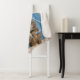 Cute young tabby cat posing on a wall in front of a blue wooden door and puts its feet through a blue wrought iron fence. Katho Menden took the photo of this adorable kitty in a small village on Paros, an Aegean island in Greece. This blanket is a gift idea for cat lovers.
