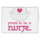 Cute pink heart logo nurse hat with proud to be a nurse slogan comes on this great nursing gift.