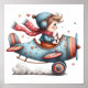 This whimsical illustration of a child flying an old-fashioned aeroplane will make your child's room one-of-a-kind. Perfect for nursery, playroom, or bedroom. AI assisted graphic purchased with commercial use. Artwork: RedHeronLighthouse