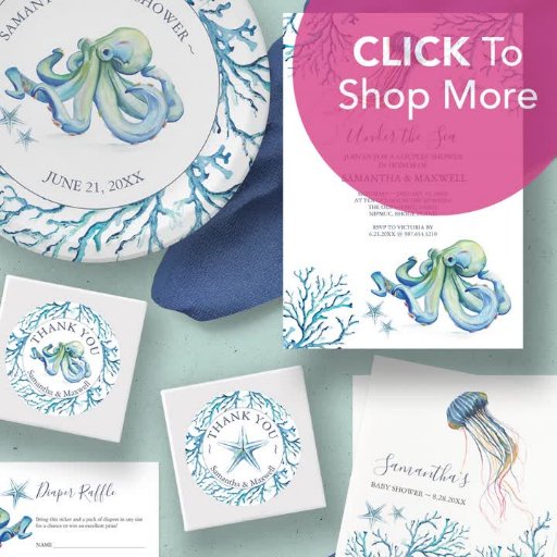 Are you planing a birthday party on a budget? This listing is for a cute under the sea boy's birthday invitation. A charming nautical themed invitation featuring a replica of my original watercolor ocean animals, sea turtle, blue octopus, starfish and sea coral. This invite is perfect for coastal and beach theme birthday parties. To see more summer party invitations by Victoria Grigaliunas visit www.zazzle.com/dotellabelle