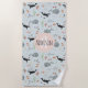 This whimsical and cute kids beach towel design features a whale, fish, swordfish, orca and seaweed, with room for you to add your child’s name in beautiful typography. The perfect whimsical gender neutral children’s pattern for ocean lovers!