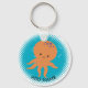A cute orange cartoon octopus. Baby animal key chains. Blue ocean background. Edit name to customise. Gift idea for kids.