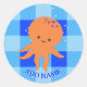 Cute Octopus Cartoon Blue Plaid Custom Name Classic Round Sticker