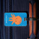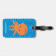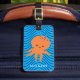 A cute orange cartoon octopus. Baby animal luggage tags. Edit name to customise. Blue wave pattern version. Gift idea for kids.