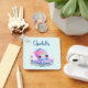 A keychain with an image of a cute girly octopus with a flower on her head. Big bright eyes and a friendly face.