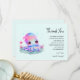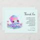 Thank you card with an image of a cute girly octopus with a flower on her head. Big bright eyes and a friendly face.