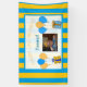 Cute boy's birthday party banner, Orange and blue stripes and your baby boy's picture. Just change the picture, name and age in the personalise area.