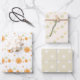 Cute Orange and Stars On Winter White Wrapping Paper Sheet