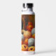 Personalised water bottle. Sweet little orange striped kitten playing in a basket of balls of orange and white yarn.