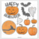 Cute Orange Black Halloween Bats Ghosts Pumpkin