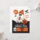 Bring the spooky fun to life with this cute orange and black Halloween party invitation! Featuring an adorable ghost sipping a drink, a pumpkin jack-o’-lantern, bats, and “Trick or Treat” text, this festive flyer is perfect for promoting your Halloween event. Ideal for costume parties, trick-or-treat gatherings, or family-friendly spooky nights. Editable date and location areas let you customise it for your celebration.