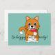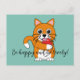 Cute Orange Cat Eating Apple Cartoon | Add Text Holiday Postcard