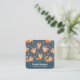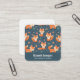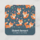 Business cards with a pattern made with cute and happy orange foxes. Dark green background. Little mushrooms and leaves sprinkled about.
