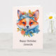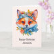 Birthday card with an illustration of an adorable fox portrait with a blue and orange floral crown and collar.