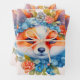 Cute Orange Fox with Floral Crown Wrapping Paper Sheet