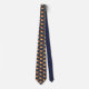 Dark blue tie with a pattern composed with a cartoon drawing of a cute orange fox sleeping peacefully. A green leaves wreath behind.