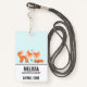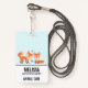 Name badge with a graphic illustration of 2 orange foxes looking cute and happy.