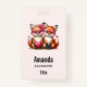 Name tag with an adorable image of 2 foxes wearing cute rose tinted heart glasses. Decorated with heart accents.