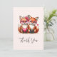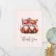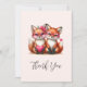 Thank you card with an adorable image of 2 foxes wearing cute rose tinted heart glasses. Decorated with heart accents.