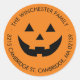 Cute orange and black Jack o lantern Halloween return address labels Round Stickers, envelope seals.